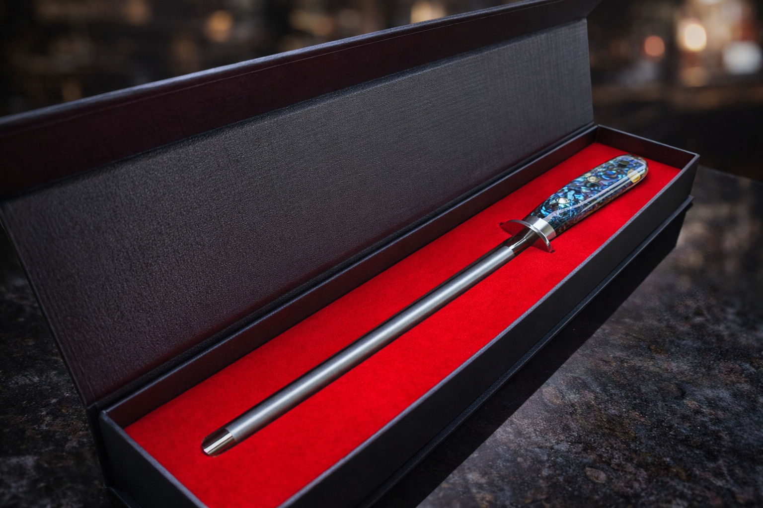 Introducing the "Kaitiaki," a masterfully crafted 8-inch sharpening steel from the Tangaroa Collection, designed to keep your blades razor-sharp and ready for any task. Featuring a high carbon steel blade with an impressive hardness of 60+/-2HRC, the "Kaitiaki" ensures long-lasting durability and precision in maintaining your knives.